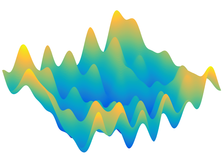 We are in an N dimensional space, where N is the number of neuron weights and we have a smooth scalar function, the performance that we want to optimize. If we only had two weights to fiddle with, the space we would have to explore might look like the above picture, where we have to wander around until we find the highest point. Computational scientists have studied this problem for years and it is the well known optimization problem. The advent of GPU's made available the kind of massive and cheap computational power needed to solve the optimization problem of finding the neural network weights, and suddenly computers could tell dogs from cats understand natural language and answer any question you might have.