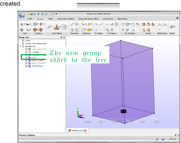 n A new geometry group is added to the group list tree when the outer domain is