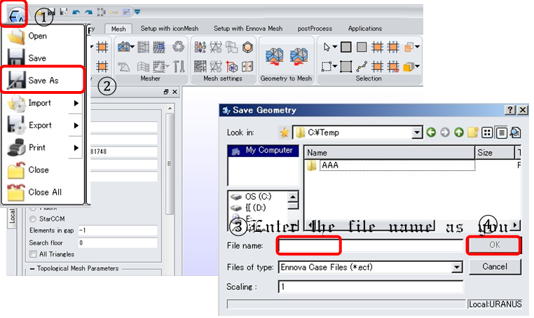 n Before mesh generation it is advised to save the data into .ecf file.