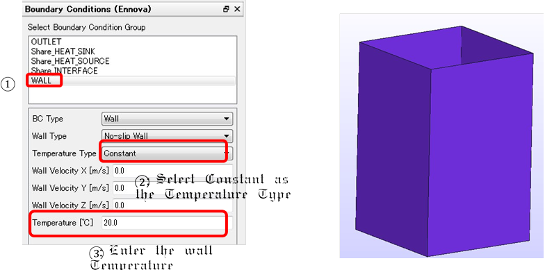 n WALL will be set to No-slip Wall with Constant Temperature.