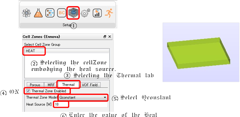 n HEAT (heat source) will be set to be Cell Zone. It will have the same properties with the SOLID
