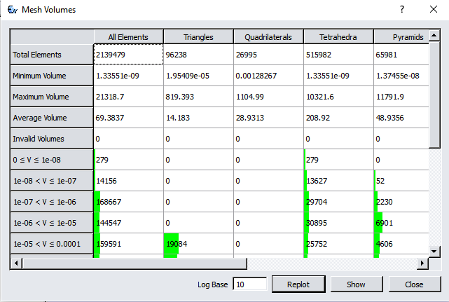 Use this command to check for the volumes of the mesh elements. Negative volumes are marked as invalid.