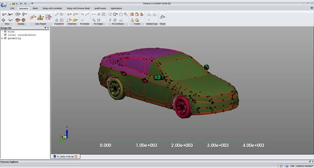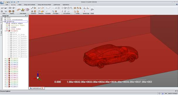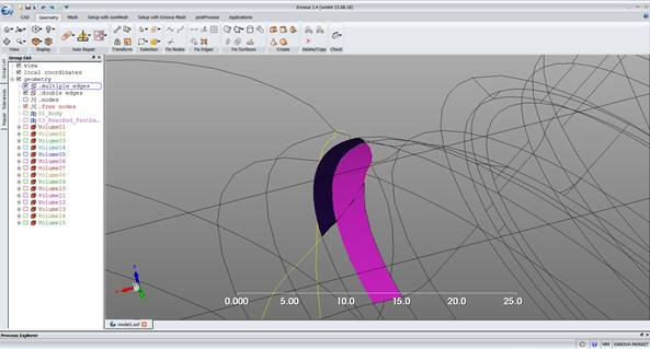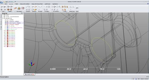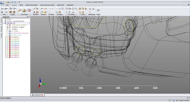 Almost the entire repair of the car has occurred automatically. Ennova has largely been able to understand the full topology. Looking at the tree for hints we see the mirrors have not been successfully created as volumes.