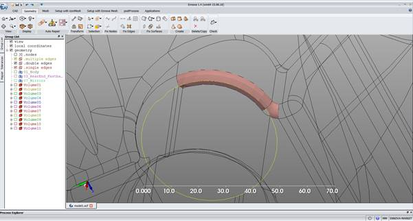 At this stage, try a surface mesh. Ennova will come back reporting that a partial mesh has been created and ask whether you want to load it. Answer No to this, and No to viewing the unmeshed faces. Instead, look in the check mesh and there will be an unhappy face. Click on this and it will take you to the model face that could not mesh.
