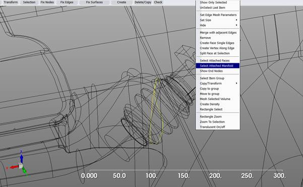 There is still one more open yellow loop in the model. It is harder to find, as it is a very small gap. One way to research a model is pick a black edge that is on a manifold that should be able to be displayed easy. For example the inboard end of the exhaust header should be one manifold for just until it crosses the body.