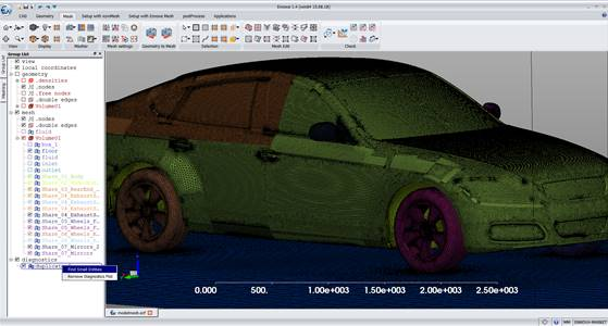 At this stage a valid mesh should result. Similar to before mesh diagnostics can be used to verify the quality of the mesh. Using the Ennova button the mesh export dialogue box can be used to export the mesh to the desired format. This concludes the tutorial.
