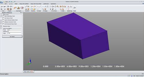 Now the model is a valid volume. Set the defeature parameter to 5 mm and run the Defeature command. This will remove any CAD artifact that did not mesh well.