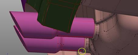 After inspection we see that on both exhaust pipes there is not an intersection with the car muffler. We need to manually split these surfaces.