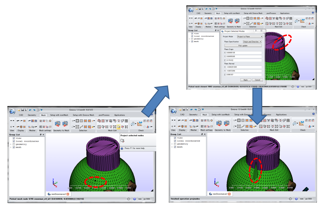 Project Selected Nodes will project the selected to nodes to the defined surface . The defined surface can be represented as a plane , a line , a coordinate system or a group.